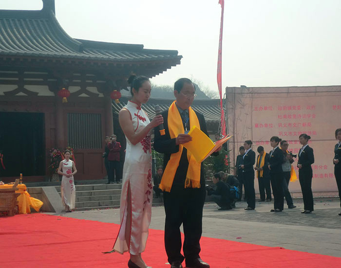 由鞏義市杜甫詩詞學會發起,杜甫故(gù)裏和杜甫陵園(yuán)協辦(bàn)。活動重在緬懷聖賢、弘揚文化,活動有祭祀上香、宣(xuān)讀祭文、吟唱頌歌、樂舞敬(jìng)拜、陵園掃墓等議程組成,屆時將(jiāng)會由來自省(shěng)、市的各界領導,及各類杜甫研究機構、杜(dù)氏宗親及我市的大中小學生等數千名人員參(cān)加(jiā)祭拜詩聖活動。由我河南省杜甫機械有限公司主(zhǔ)辦並(bìng)讚助的大型拜祭大典大概在十一點圓滿結束,此意義重大而深遠(yuǎn)。